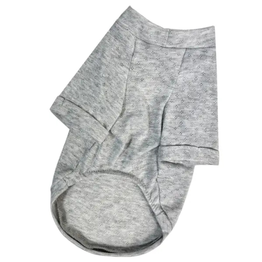 Футболка для собак перфорована сіра F-75 – це поєднання комфорту, легкості та природного захисту для вашого улюбленця. Виготовлена з натуральної дихаючої тканини, вона забезпечує вентиляцію і водночас захищає шкіру собаки від укусів комах.