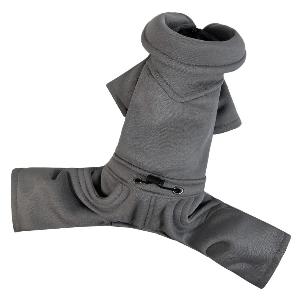 Модель виготовлена з якісної тканини трьохнитки з м’яким флісовим підкладом, яка забезпечує тепло навіть у прохолодні дні. Завдяки застібці-блискавці на животі костюм зручно надягати та знімати. А регулювання об’єму грудей дозволяє підібрати ідеальну посадку під будь-яку породу.