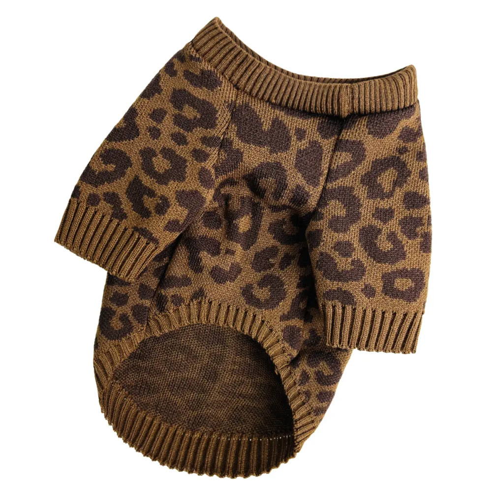 Светр має цільну конструкцію без застібок, легко одягається та не сковує рухів. Стрейчевий матеріал добре тягнеться, що забезпечує зручну посадку по фігурі. Шоколадний відтінок у поєднанні з леопардовим принтом додає яскравого акценту до образу вашого улюбленця.