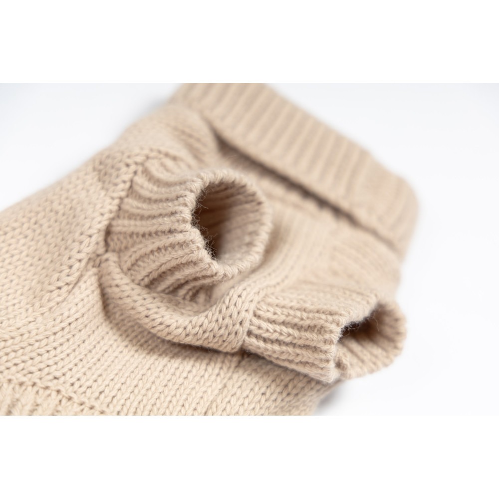 Високий комір з відворотом не тільки відповідає останнім модним тенденціям, але й надійно захищає шию собаки від холоду та вітру. Лаконічний дизайн та універсальний бежевий колір роблять цей светр чудовим вибором для щоденних прогулянок.