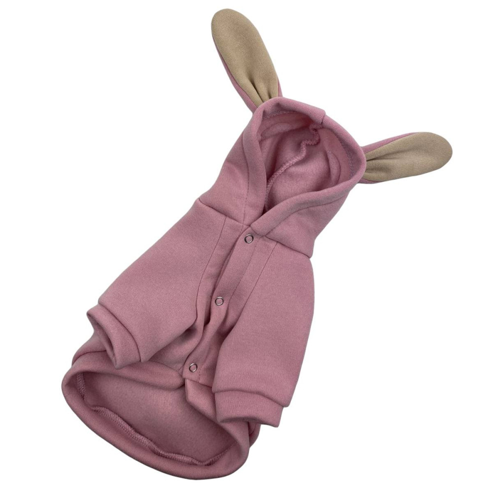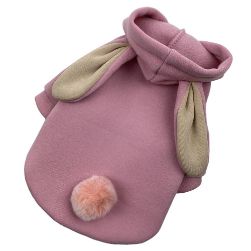 Головною особливістю цієї моделі є грайливий капюшон з пришитими вушками, що надає вихованцеві милого вигляду. У нижній частині виробу розташований натуральний помпон з хутра кролика, який гармонійно доповнює загальний стиль та додає акцент на спинці.