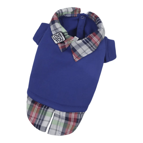 Толстовка з сорочкою для собак Y-297 синього кольору – це стильна та практична модель для щоденних прогулянок у прохолодну пору. Виконана з трикотажної тканини на флісі, вона зберігає тепло, забезпечуючи максимальний комфорт вашому улюбленцю. Завдяки застібці на кнопках на животі толстовка легко вдягається та знімається, що особливо зручно для активних прогулянок.