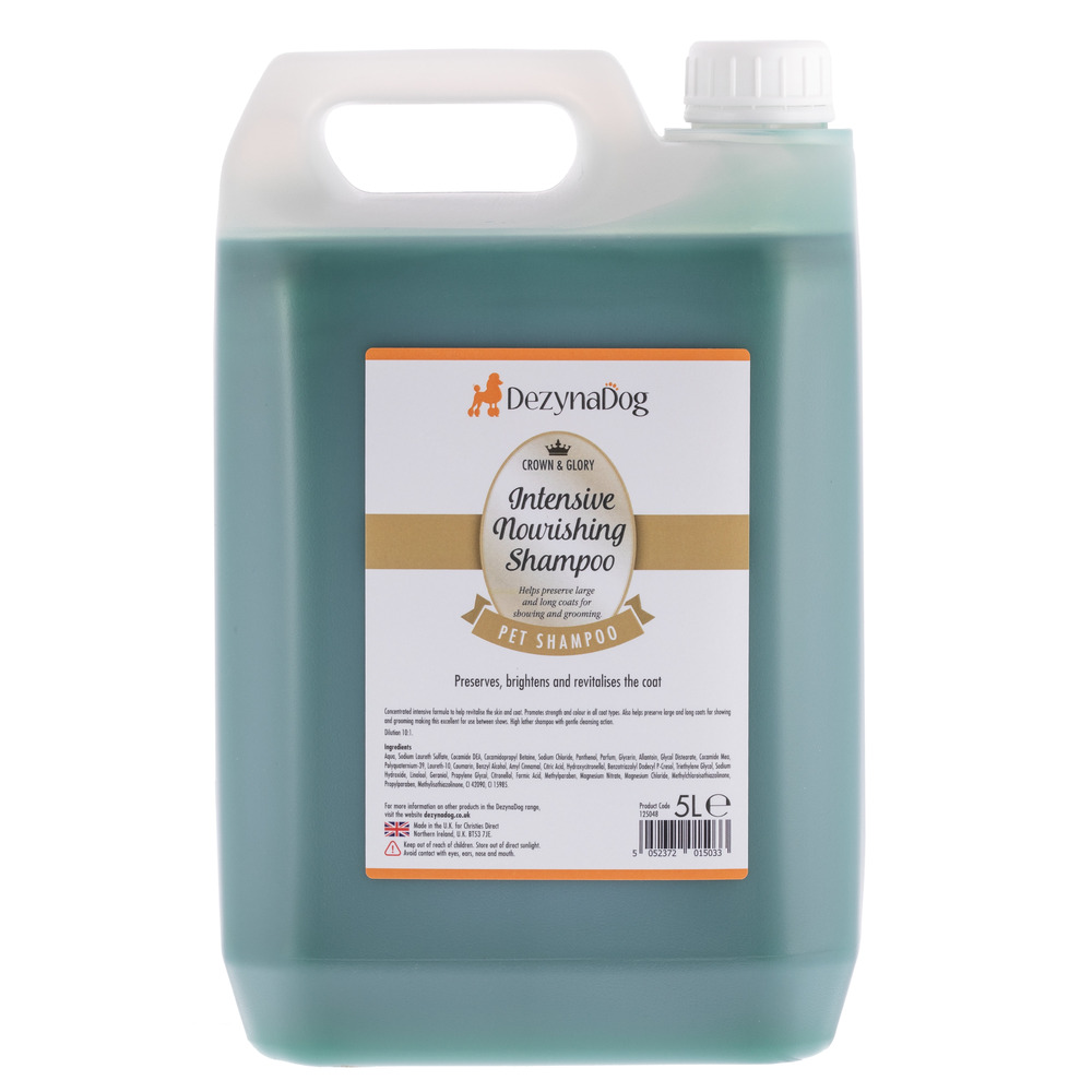 Шампунь Dezynadog Crown Glory Intensive Nourishing — це професійний засіб 3в1 для догляду за шерстю собак усіх порід. Його унікальна формула забезпечує глибоке очищення, інтенсивне живлення та відновлення, надаючи шерсті здорового блиску та підкреслюючи її природний колір. Особливо ефективний для догляду за довгою шерстю, оскільки значно полегшує розчісування.