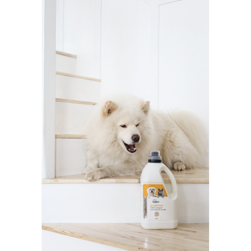 - Ефективне очищення: Формула глибоко проникає в шерсть, видаляючи найскладніші забруднення, жир та залишки косметики.
