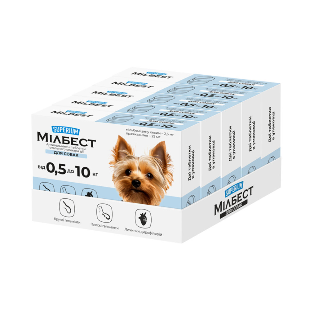 Оберіть SUPERIUM Мілбест для забезпечення комплексного захисту від паразитів та підтримки здоров'я вашого собаки.