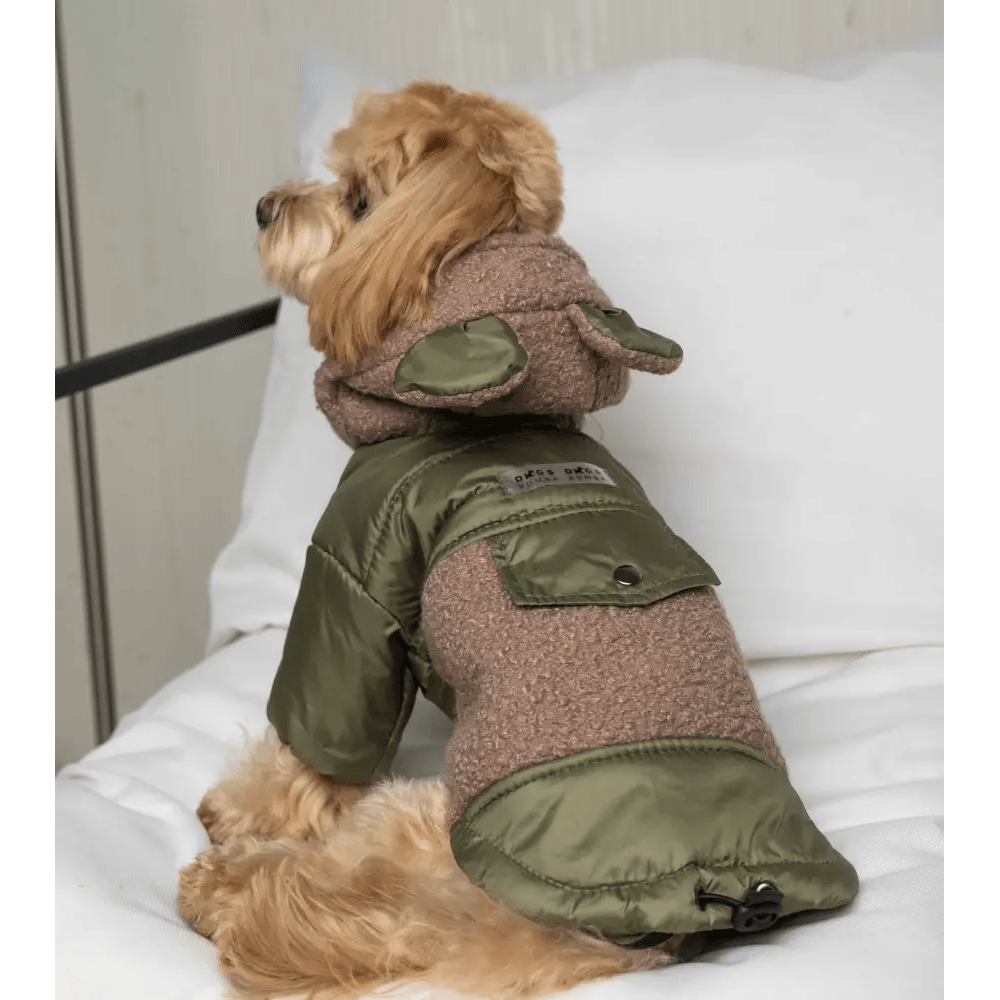 Куртка Teddy для собак K-80 хакі – це чудовий вибір для холодної пори року, який поєднує стильний вигляд і високий рівень захисту. Виконана із комбінації водовідштовхувальної плащівки та м'якої вовни-букле, куртка забезпечує захист від вологи й створює комфортне тепло завдяки синтепоновому утеплювачу.