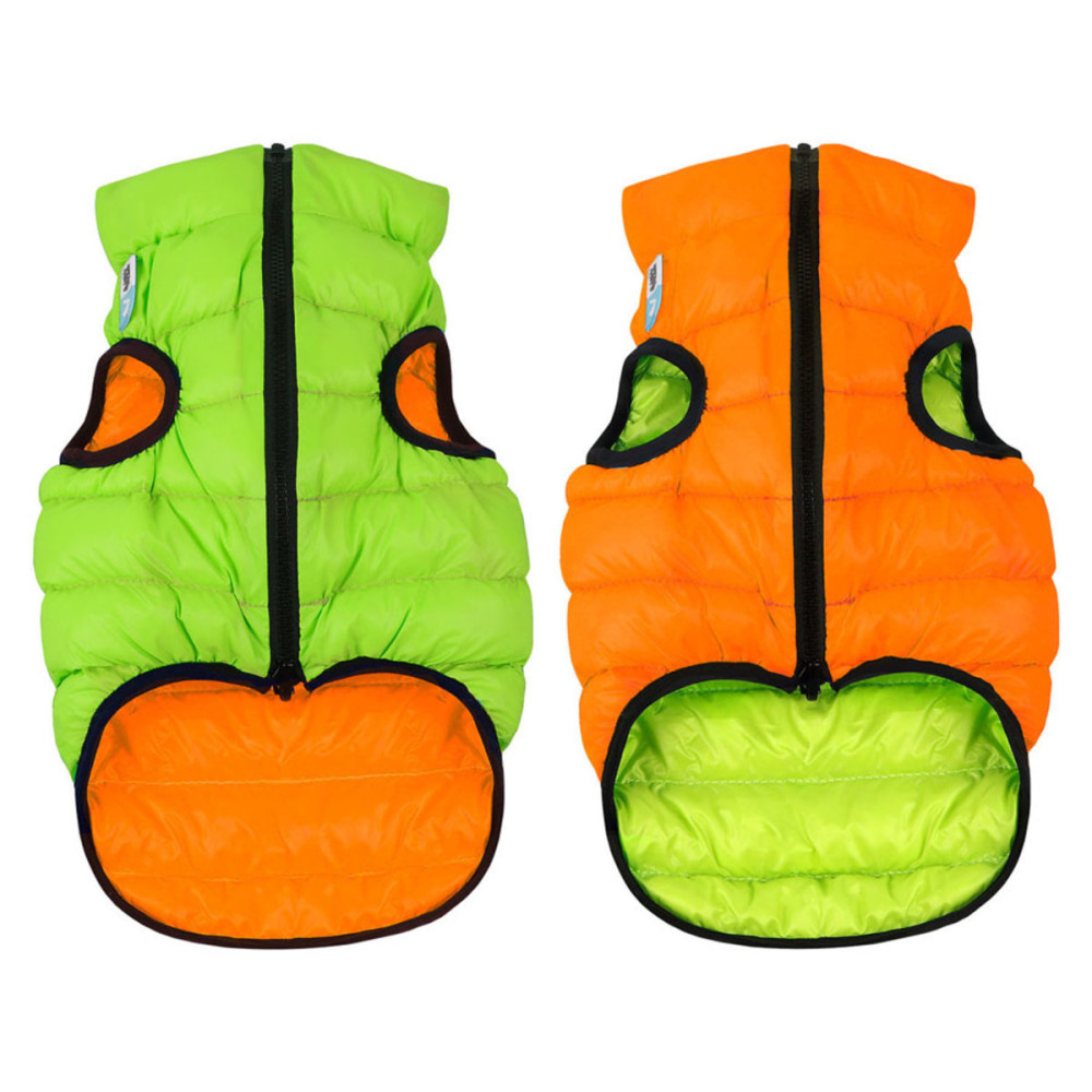 Легка та тепла двостороння куртка-жилетка для собак AiryVest, помаранчево-салатова